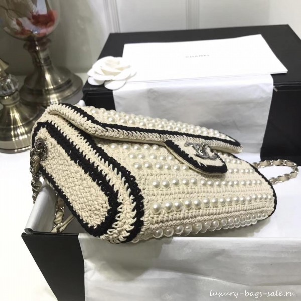 Replica Top chanel pearl knitwear classic flap bag white AQ01977
